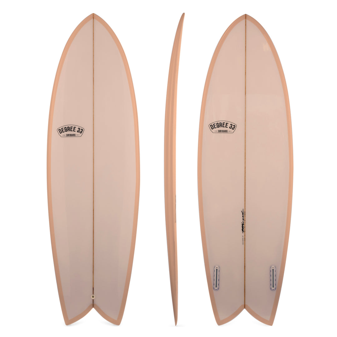 5'10" Retro Fish Twin Fin Surfboard Coral Resin Tint (Poly)