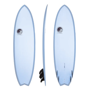 Purpose: We've had a ton of requests for a larger fish suited for surfers transitioning down from mid-length boards, something similar but more compact than the greatly successful Over Easy. We needed something slightly fuller than a shortened speed egg, with some added speed off the tail. With that, the Easy rider was born. A perfect half way marker between the Codfather and Over Easy, the Easy rider is a wave snatching machine for intermediate surfers desiring a strong wave count in busy lineups, and a cozy way to introduce newer surfers to fast turns, speed pump sections, and a first go at a top to bottom attack. The longer sleeker fishy template carries extra foam for easy paddling. Its 5-fin setup allows for the trusty, stable thruster, or a zippy, loose quad for more speed and fin release. A subtle single concave to vee bottom carries the same contours as the Codfather for perfect rail to rail rollover and massive acceleration off the back foot. The rails are slightly lower than a retro fish, locking better hold through tight turns and steeper sections. The Easy Rider is the ideal transition board for taking your surfing to the intermediate level or boosting your wave count if you're already dominant in the lineup.