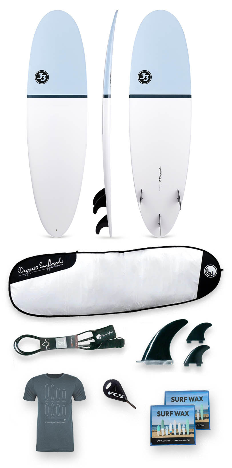 Ride33 Surfboard Package - 9' Ultimate Epoxy Surfboard, Bag, Leash, Fins & Accessories