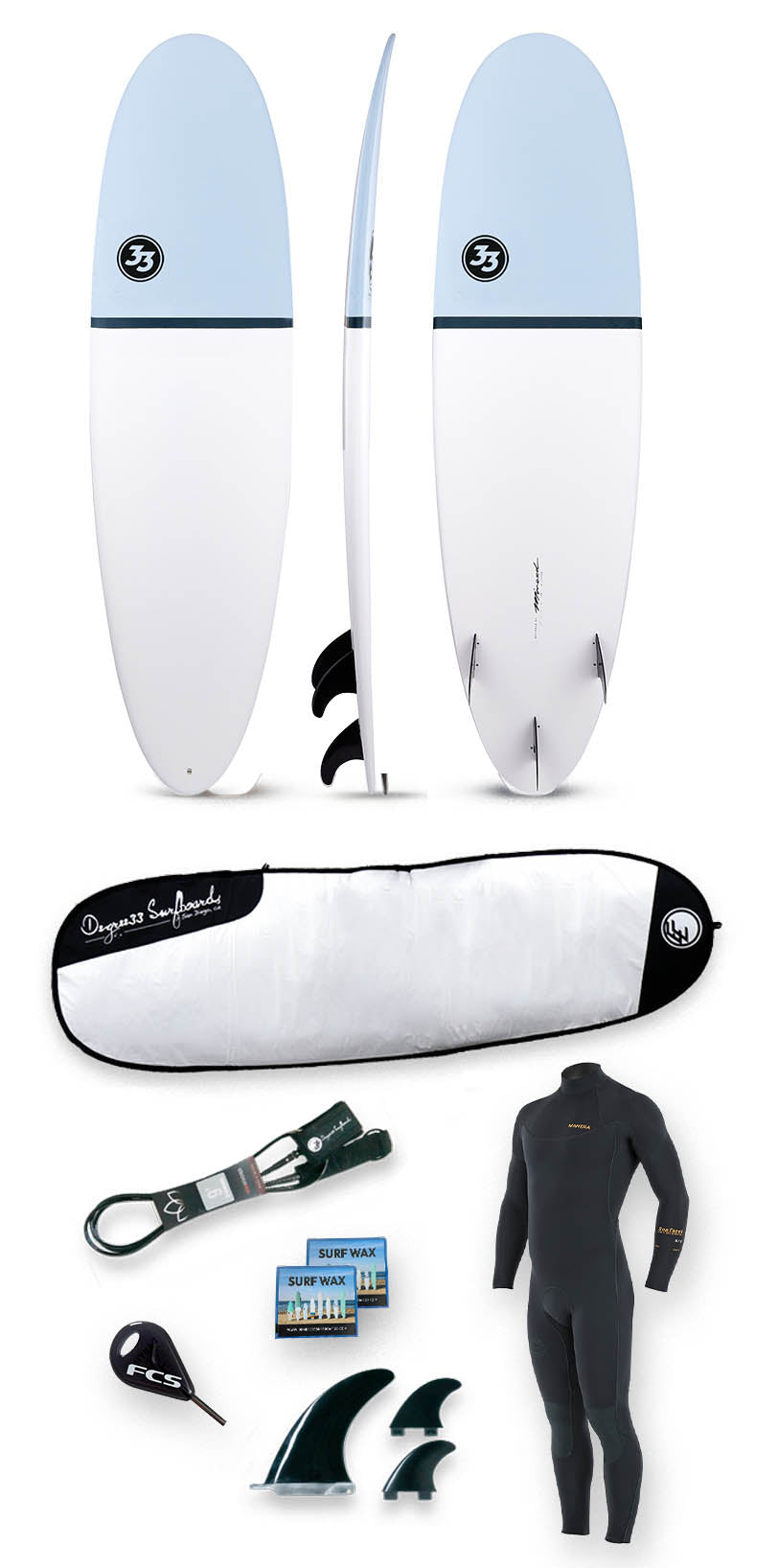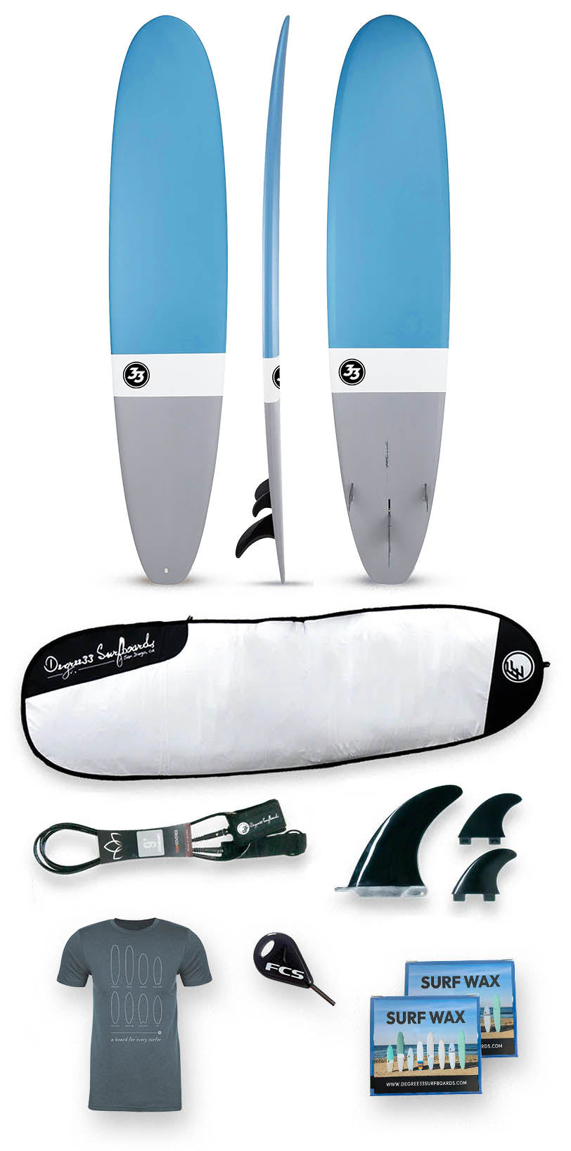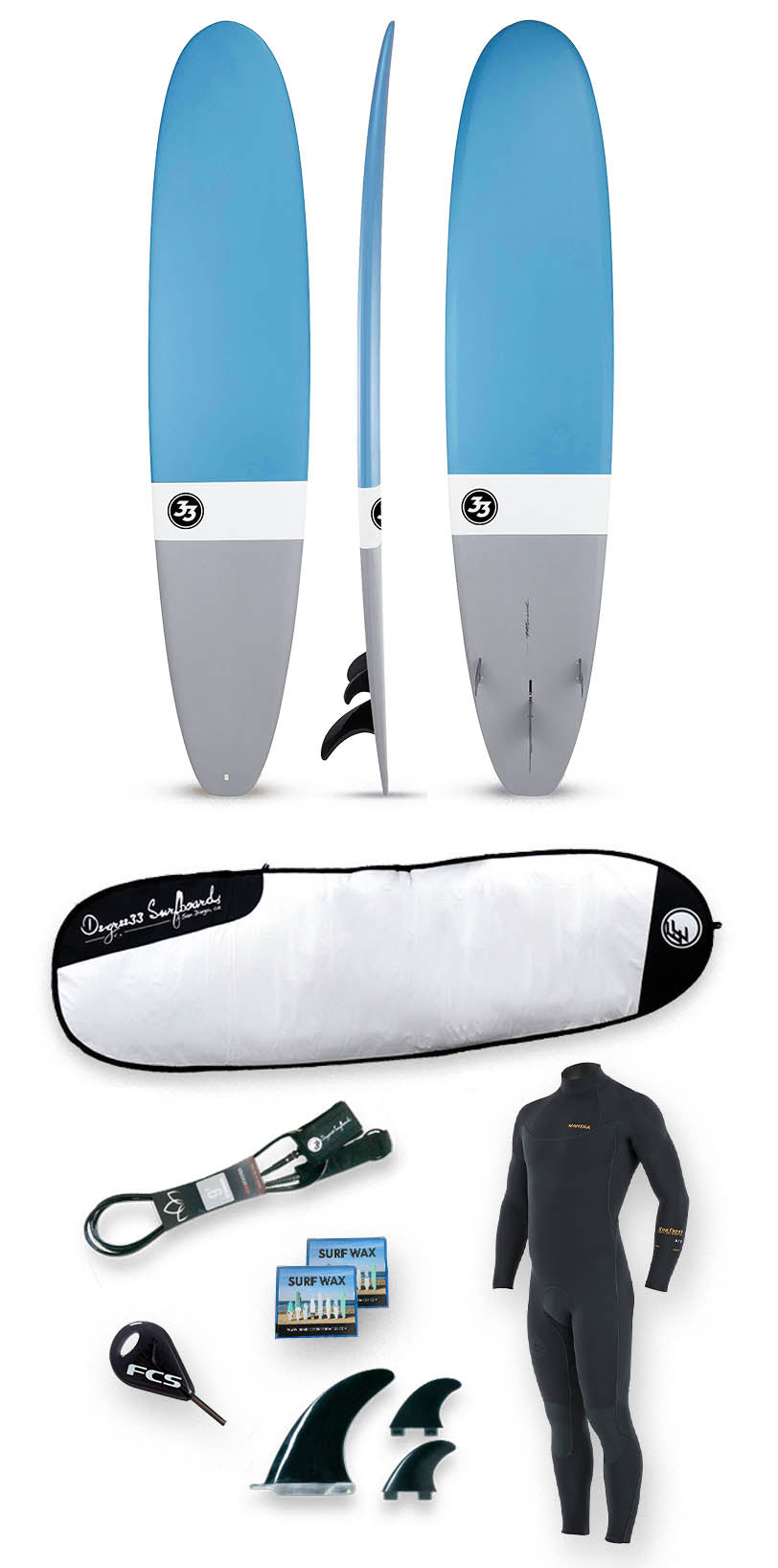 Ride33 Deluxe Surfboard & Wetsuit Package - 9' Ultimate Epoxy Longbboard